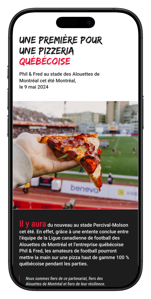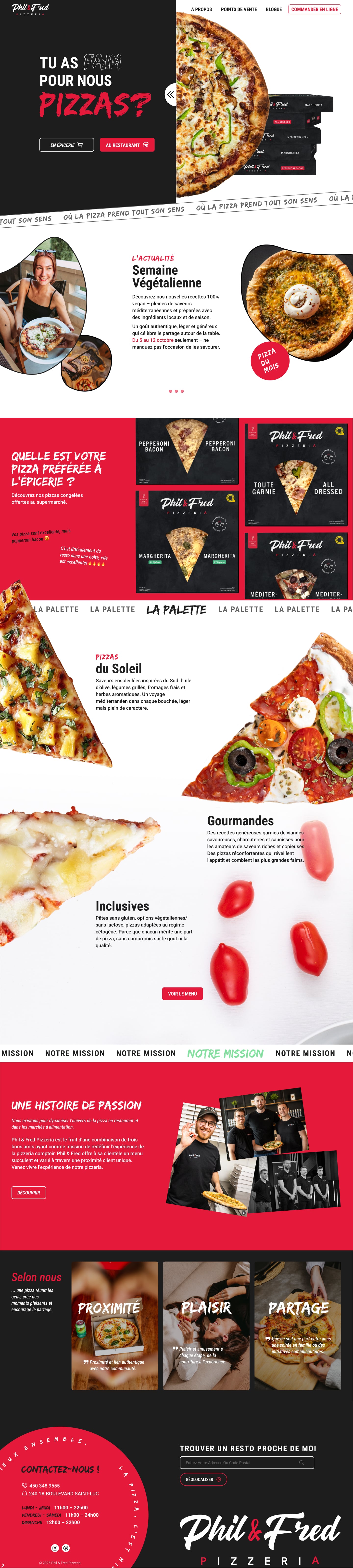A Phil&Fred Pizzeria egy pizzeria franchise Montréal-ban, több mint 300 üzlettel. Éttermeikből főként elvitelre lehet pizzát rendelni, de pár asztal is van helyben fogyasztásra. Másik szolgáltatásuk a fagyasztott pizza, melyet élelmiszerüzletekben lehet vásárolni. Három fiatal férfi a tulajdonos, a célközönség is főleg a 18-35 éves korosztály. A márka értékei a közvetlen és őszinte kapcsolat a közösséggel, valamint az örömteli és játékos élménymegosztás a közös pizzázásokon át. Legyen szó egy szelet pizzáról a barátokkal vagy közösségi kezdeményezésekről, a Phil&Fred célja a megosztás és az együttlét pillanatainak megélése.